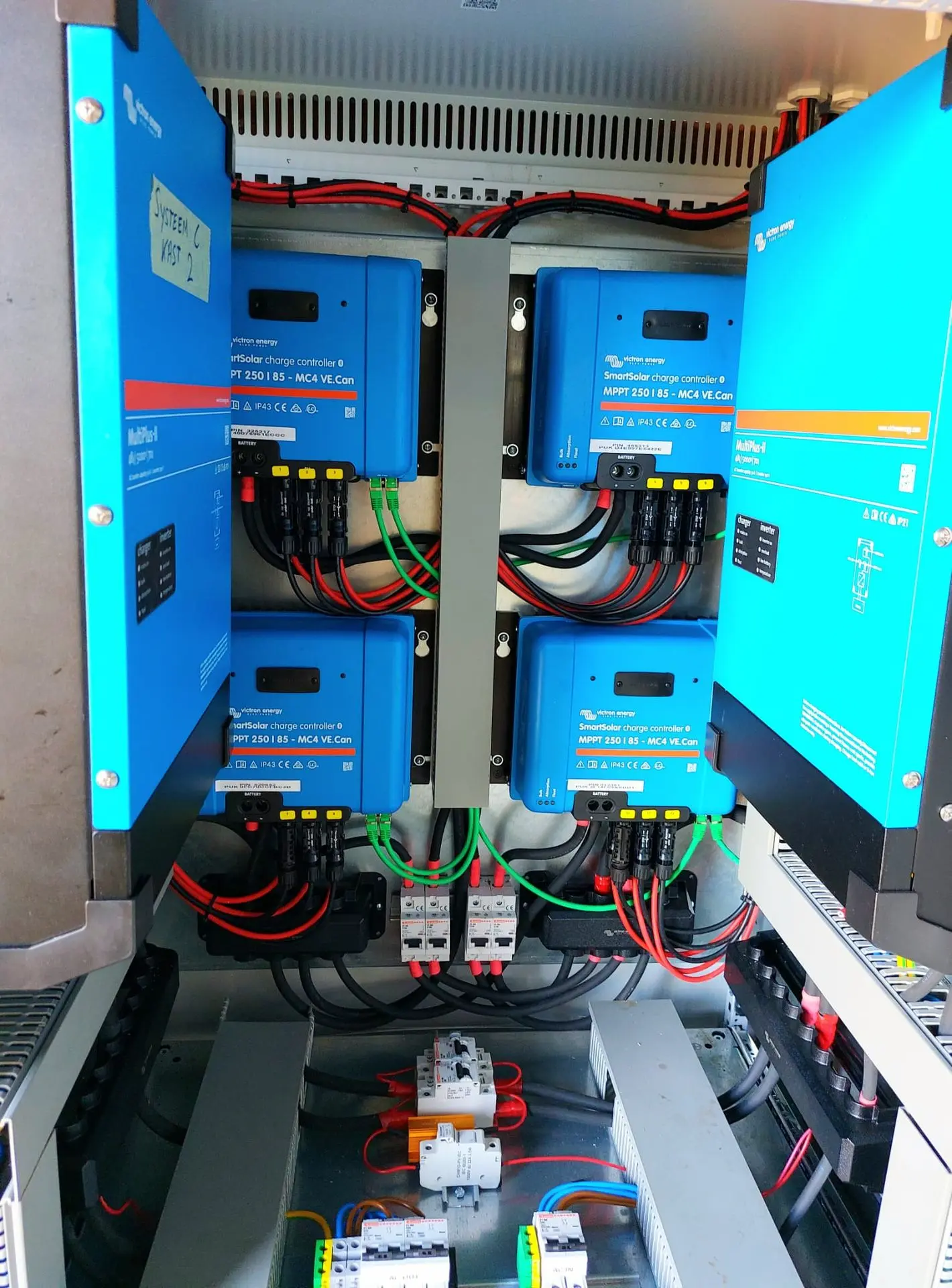 Denk aan volledig off-grid projecten in binnen- en buitenland of hybride installaties met zowel een ingang van het openbaar elektriciteitsnet als een generator aansluiting.